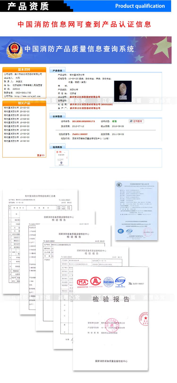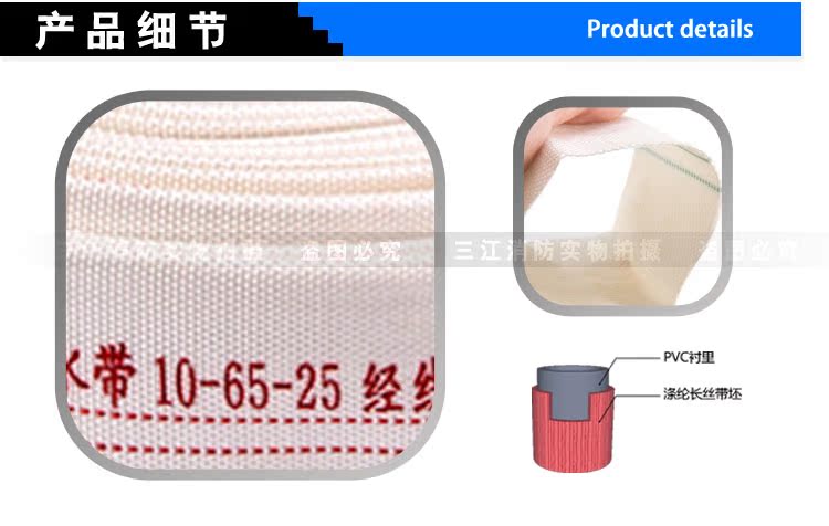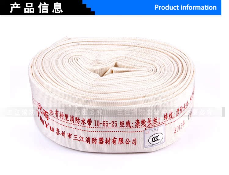 正品消防橡塑PVC 涤纶纱水带10/65/20米船用 2.5寸抗高压水管