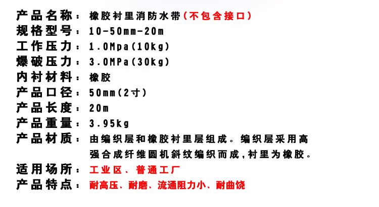 橡胶消防水带10型50口径25米 船用农用灌溉 抗高压耐磨水管