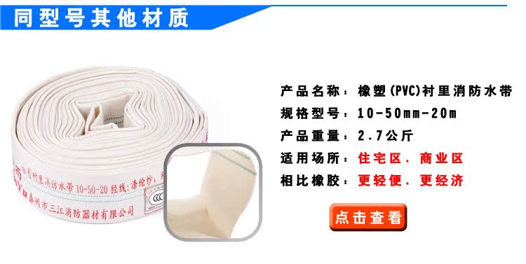 正品消防橡塑PVC 涤纶纱水带10/65/20米船用 2.5寸抗高压水管