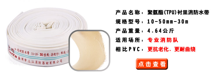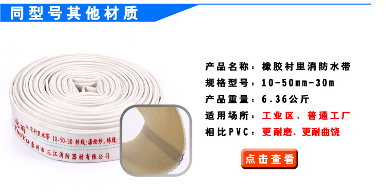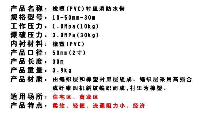 厂家直销 橡塑PVC消防水带10型50/30米 船用2寸抗高压轻便