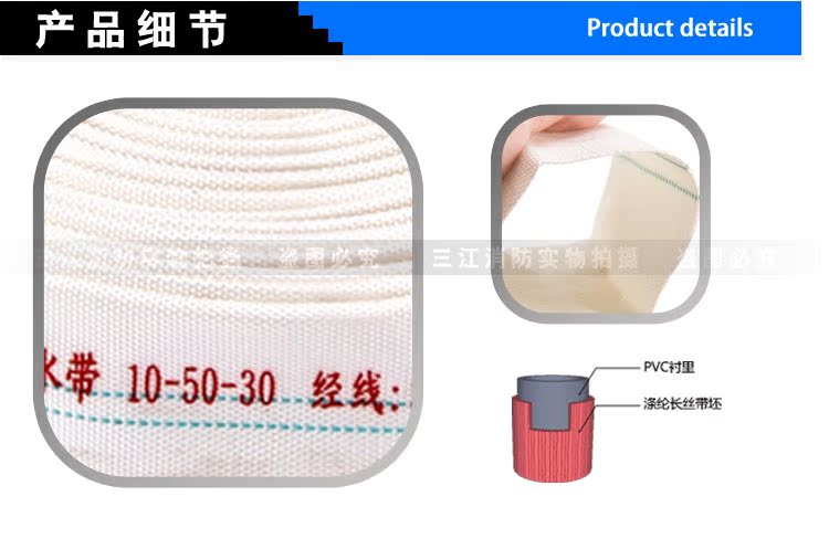 正品消防橡塑PVC 涤纶纱水带10/65/20米船用 2.5寸抗高压水管