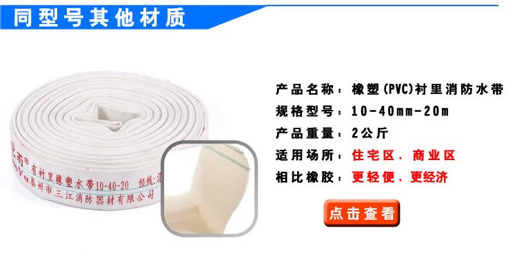 正品消防橡塑PVC 涤纶纱水带10/65/20米船用 2.5寸抗高压水管