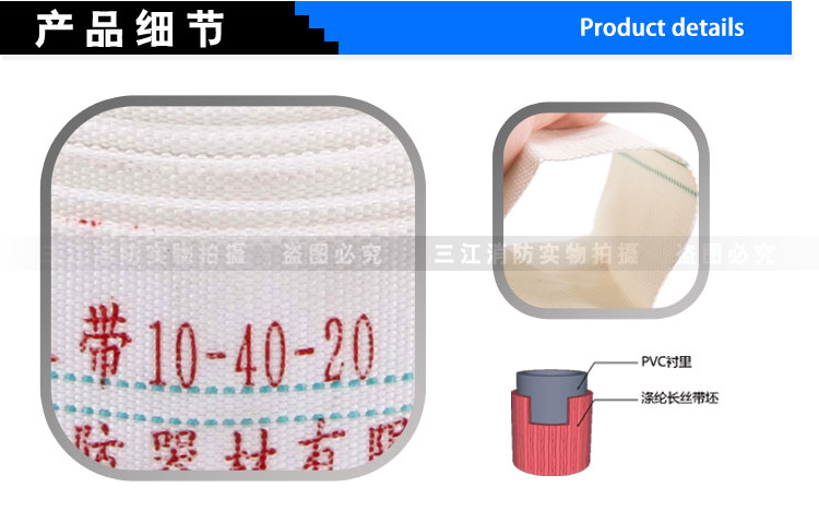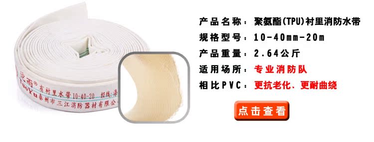 正品消防橡塑PVC 涤纶纱水带10/65/20米船用 2.5寸抗高压水管