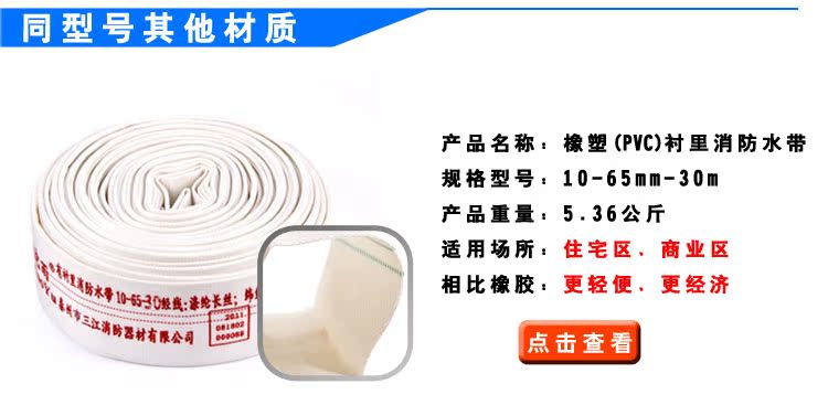 正品消防橡塑PVC水带10型65口径30米 船用2.5寸抗压轻便水管