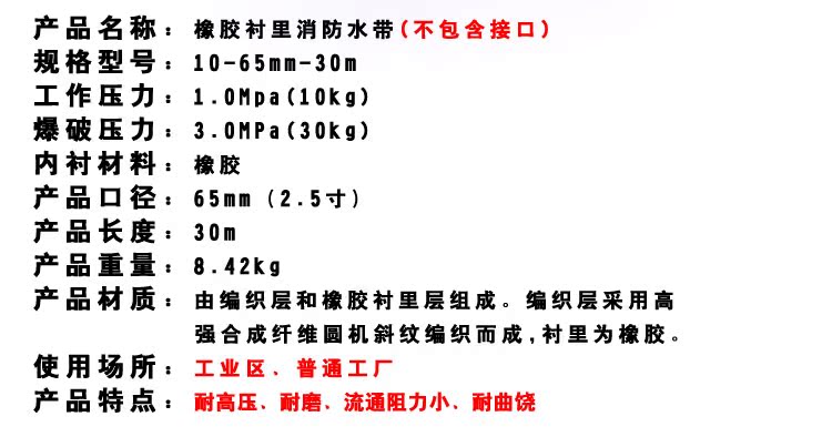 正品沱雨 橡胶消防水带10/65/30米 船用农用灌溉 抗高压耐磨水管