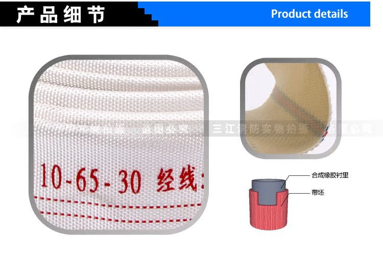 正品消防橡塑PVC 涤纶纱水带10/65/20米船用 2.5寸抗高压水管