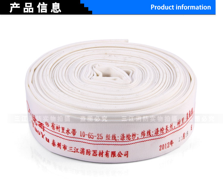 正品消防橡塑PVC 涤纶纱水带10/65/20米船用 2.5寸抗高压水管