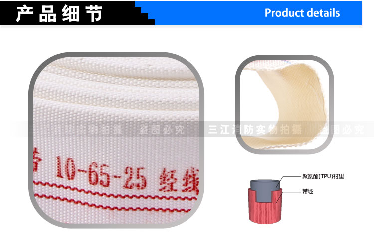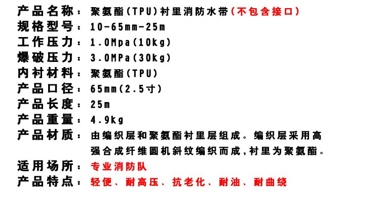 厂家直销 聚氨酯消防水带10/65/25米 船用农用2.5寸抗压耐磨水管