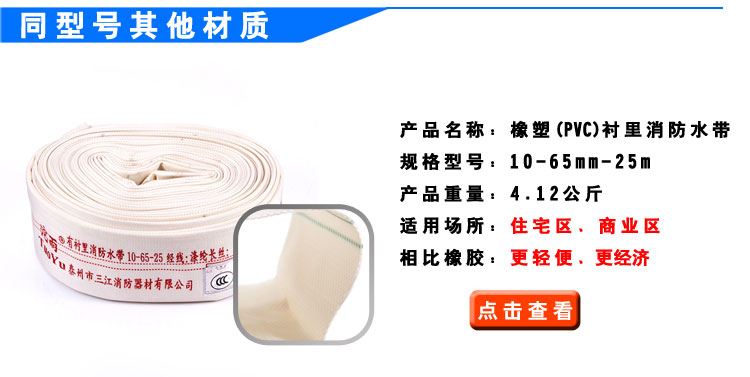 正品消防橡塑PVC水带10型65口径30米 船用2.5寸抗压轻便水管