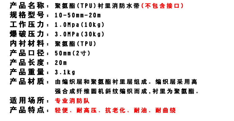 厂家直销 聚氨酯消防水带10/50/20米 船用农用2寸抗高压耐磨水管