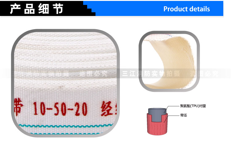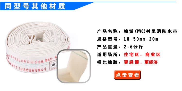 正品消防橡塑PVC 涤纶纱水带10/65/20米船用 2.5寸抗高压水管