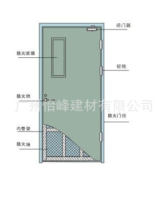 Structure characteristics:with the door frame, door leaf connected by a hinge formed,Shall be equipped with door closer and fireproof lock,