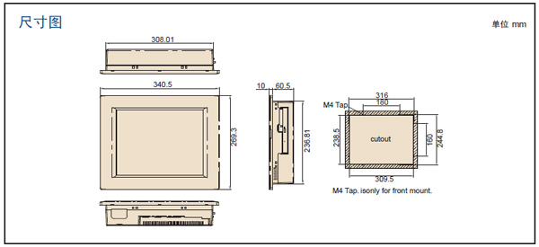 - 12.1” TFT XGA LCD,可选电阻式触摸屏