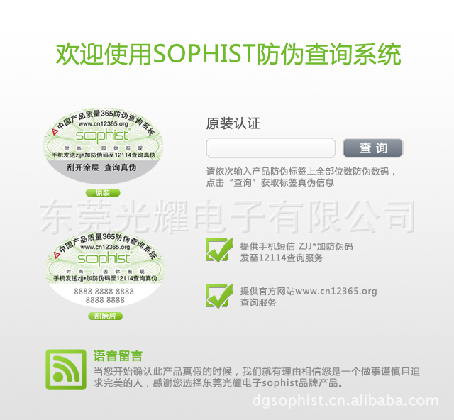 让您买的放心,sophist精心为您打造专属您的独特时尚精品,特推出中国产品质量365防伪查询系统。