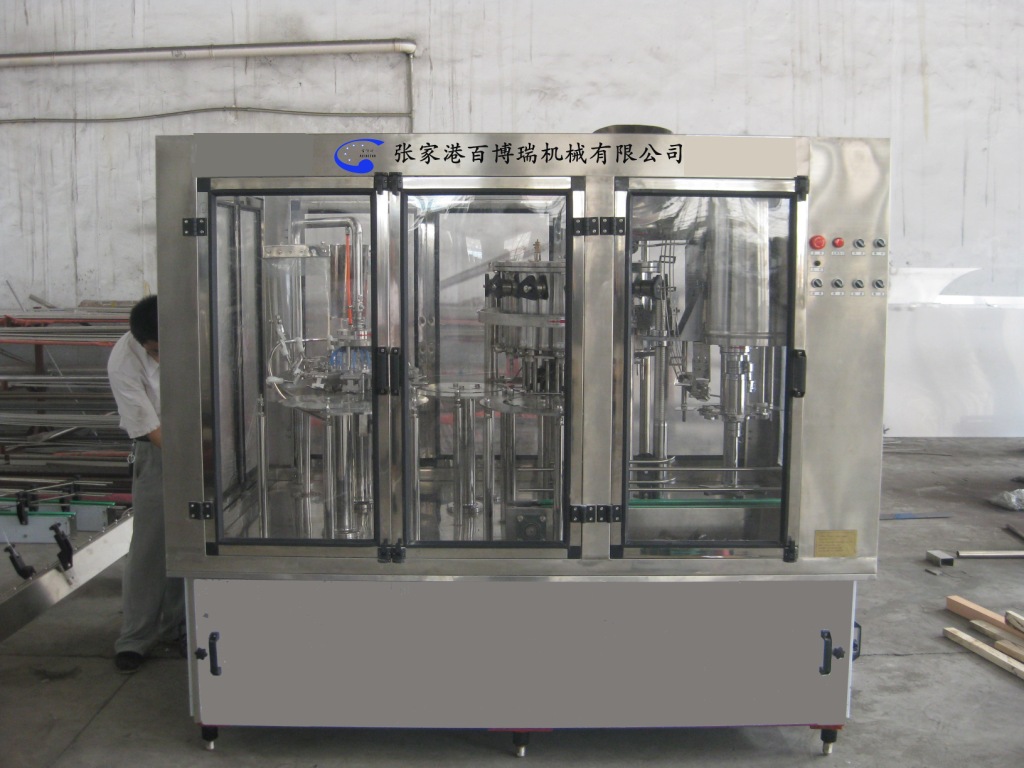 主要用于灌装经混合后的各种含气碳酸汽水饮料,具有制造工艺先进,操作简便,占地面积小等优点。机器构造合理,适合灌装各类含碳酸汽水饮料