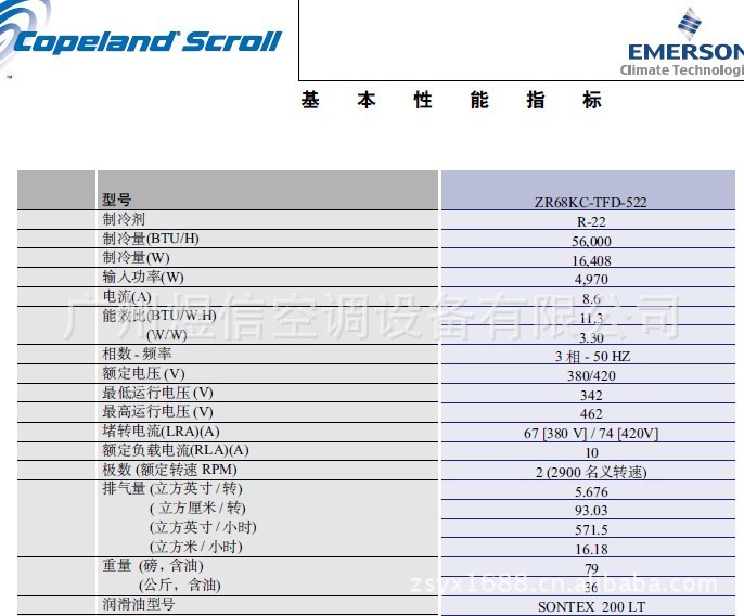 3. 谷轮ZR涡旋压缩机适用于R22和R407C,使用范围广泛。