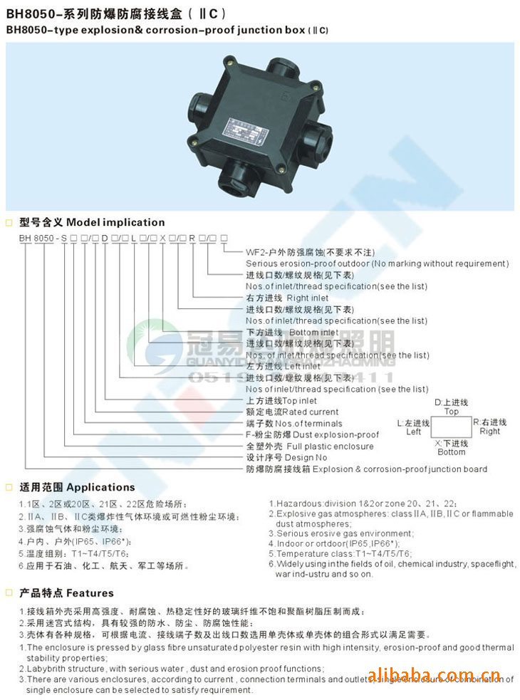 2、CBJH-DIP1/2J含义:CBJH-DIP隔爆型接线盒,管螺纹为G1/2"直通二通吊盖.