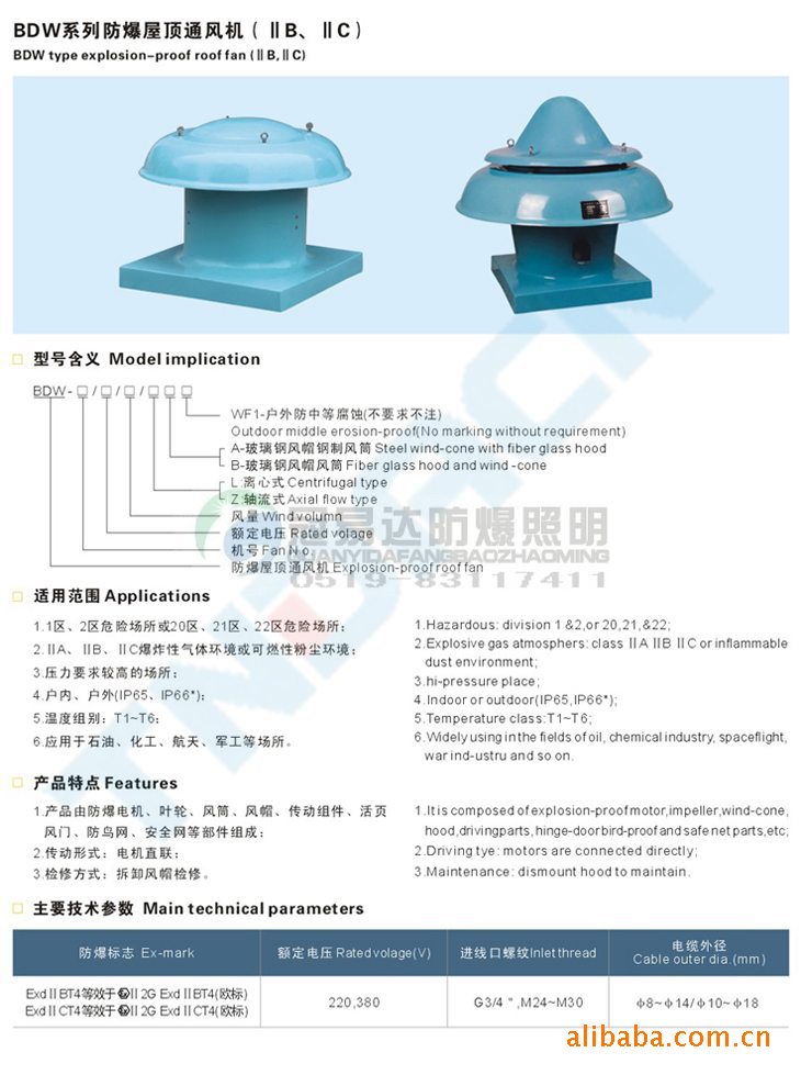 BDW系列防爆屋顶通风机(IIB、IIC)