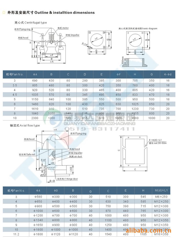 ■ 本产品由防爆电机、叶轮、风筒、风帽、传动组件、活页风门、防鸟网、安全网等部件组成;