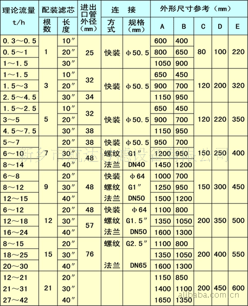 SGK液体过滤器外形尺寸参考表