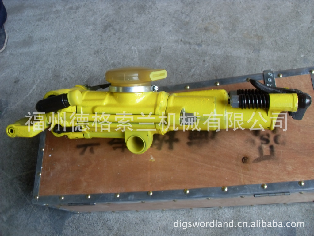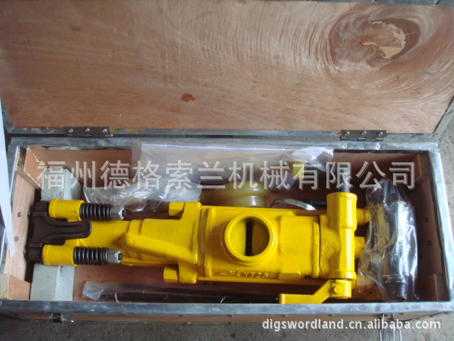 YT27型气腿式凿岩机是一种新型高效率的凿岩机械,主要用于矿山巷道掘进的凿岩作业,也是铁路、水利、国防石方工程中广泛采用的凿岩工具,与FY250型注油器和FT160A(或FT160B)型气腿配套使用,可对中硬和坚硬岩石进行湿式凿岩,钻凿水平和倾斜炮孔,卸掉气腿也可安装在台车上使用。