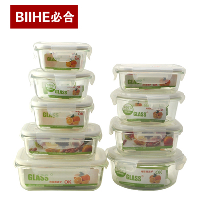 正品必合lock 微波炉专用饭盒九件套装 耐热玻璃保鲜盒密封便当碗