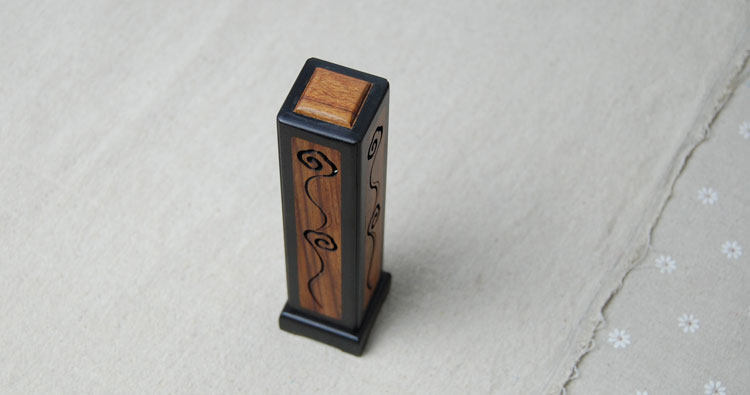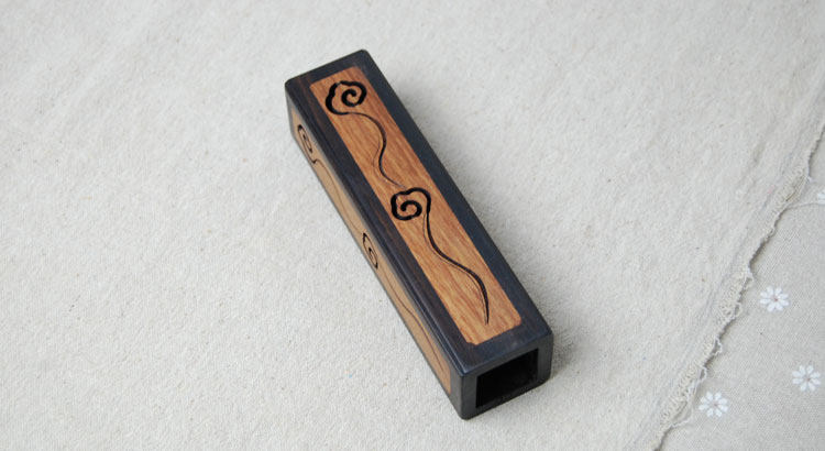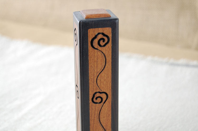 黑檀木与花梨木拼接而成,中间镂空雕刻祥云图案,体现出了“渊源共生,和谐共荣”的美好寓意。