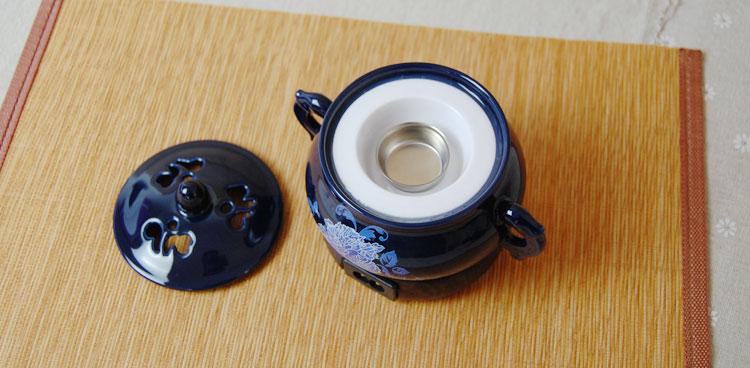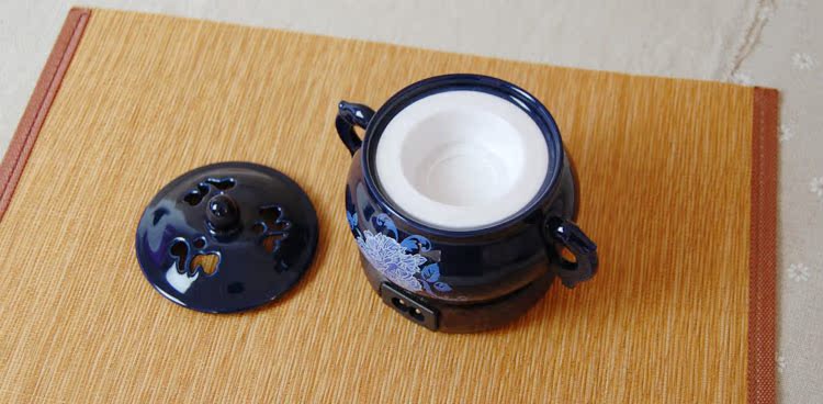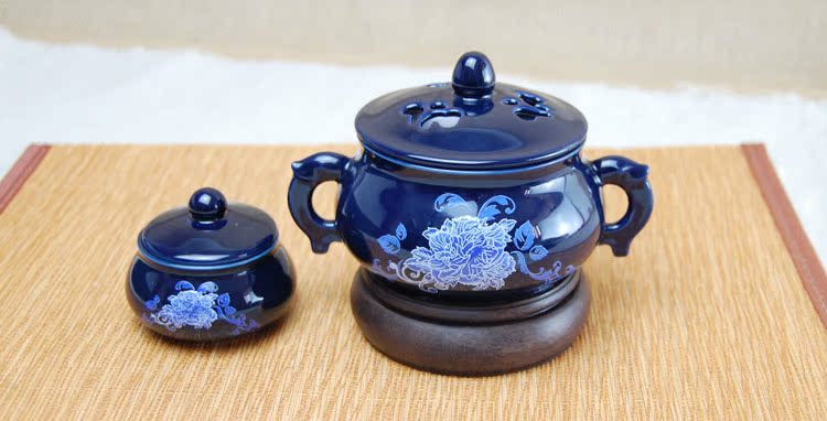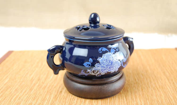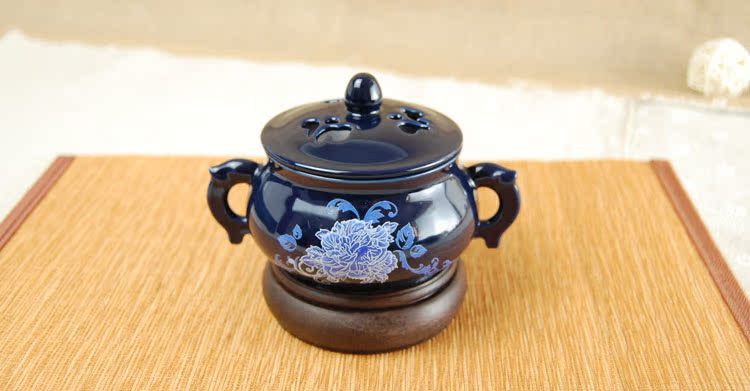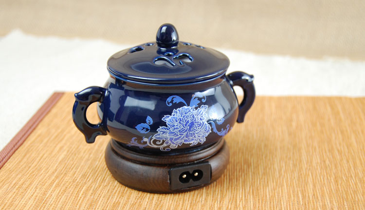 【宝贝名称】:鱼耳炉宝蓝牡丹电子熏香炉套装