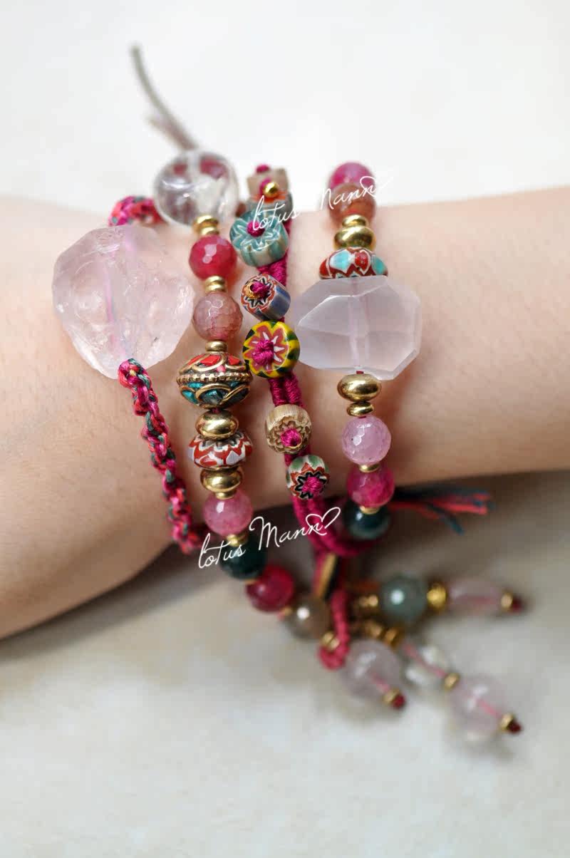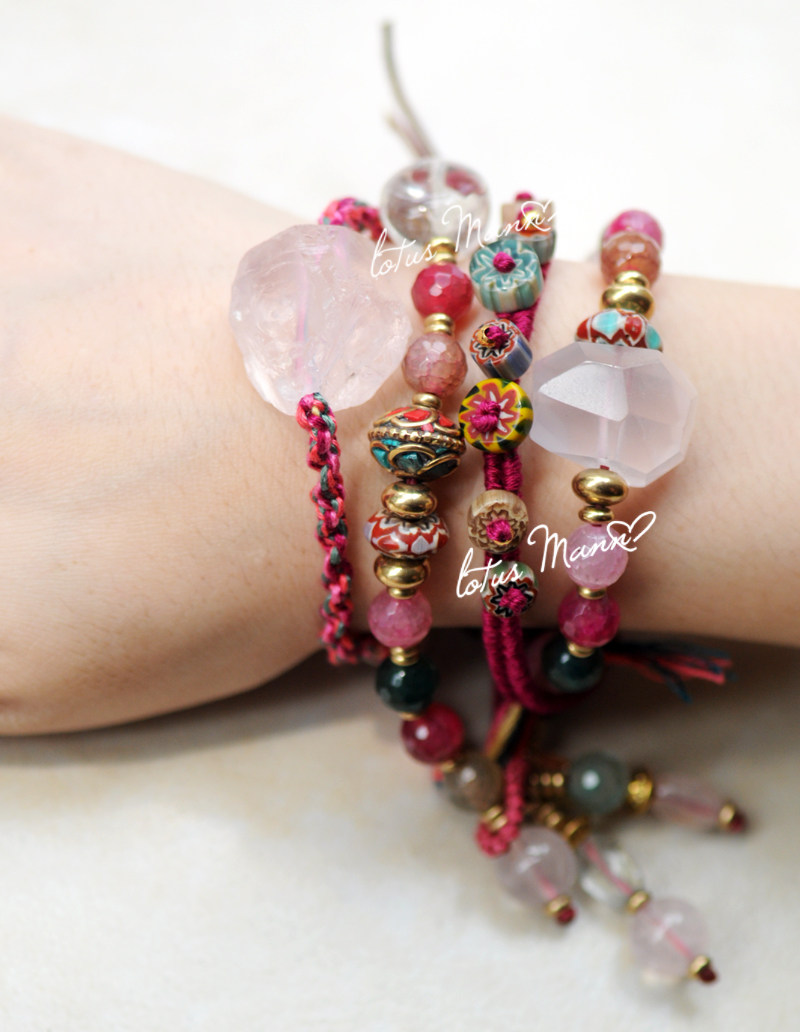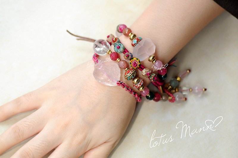 宝贝名称 | lotus mann 芙蓉晶粉晶原矿大颗单圈6色编织手链可调节 |