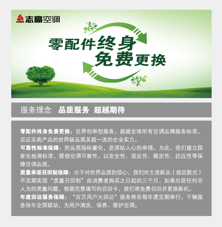 厂家温馨提示: 当阁下遇到以下情况时,请及时拨打志高空调4006-757-888客服热线,以便我们能快速为阁下妥善处理:1、在安装人员拆包后,发现缺件(如遥控器、连接管、说明书)或缺少机型条码等的;2、在使用过程中,机器出现运行故障(如显示屏显示F1、无法开机、无法制冷等)的;3、在安装过程中,安装人员向阁下收取安装费、手续费等不明费用的。