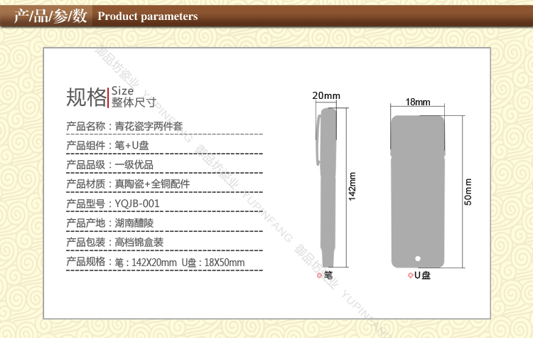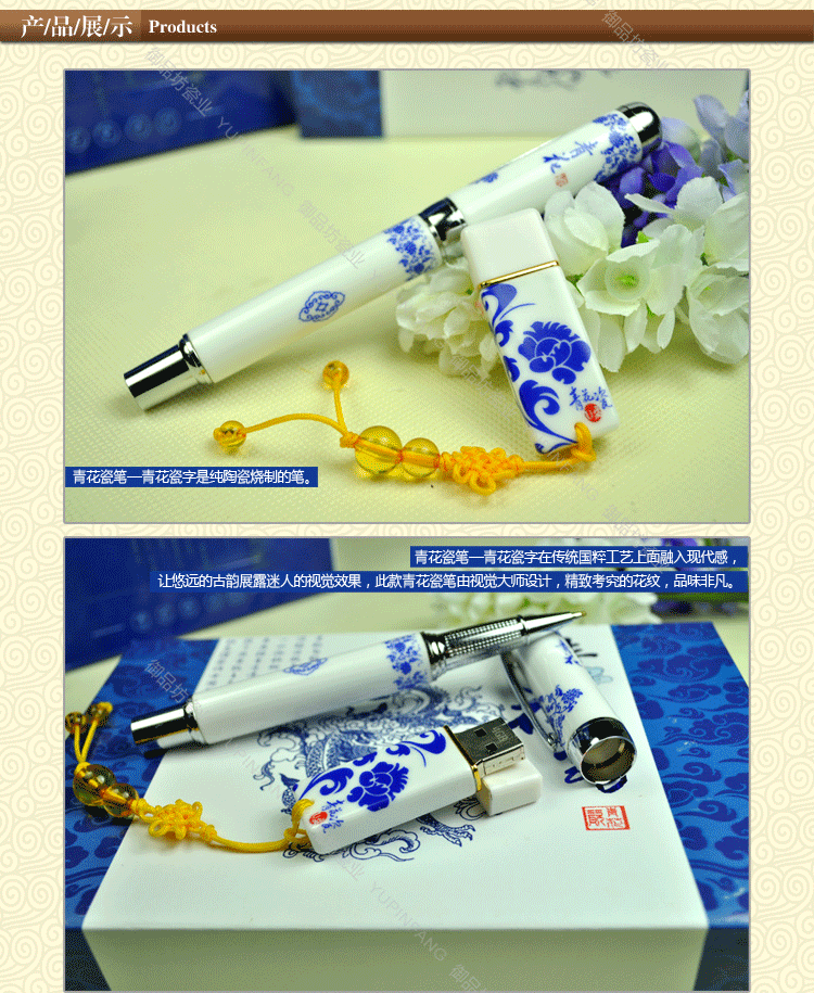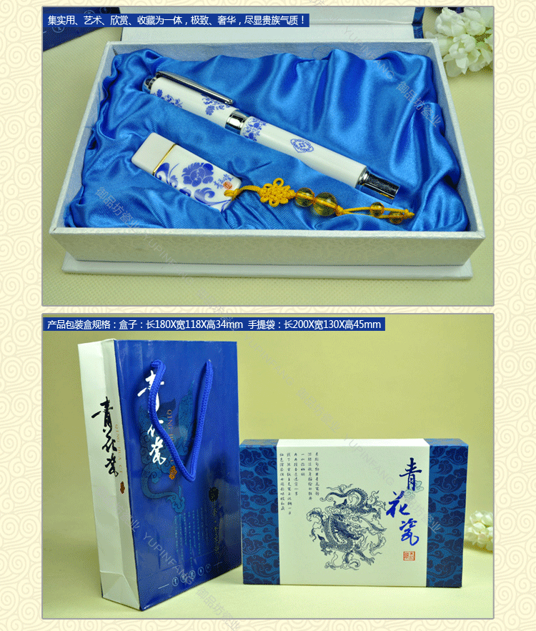 青花瓷U盘 青花瓷商务套装 青花瓷笔两件套 U盘礼品批发定制定做