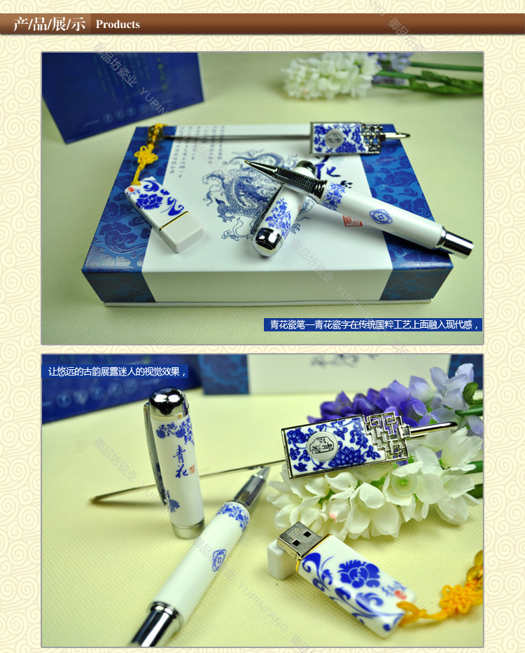 青花瓷礼品,陶瓷真瓷笔,青花瓷笔,批发定制定做