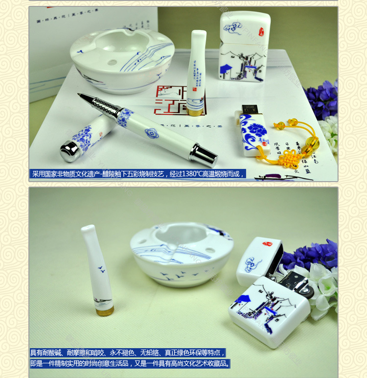 陶瓷烟嘴 青花瓷打火机 陶瓷打火机 青花瓷烟具套装厂家批发