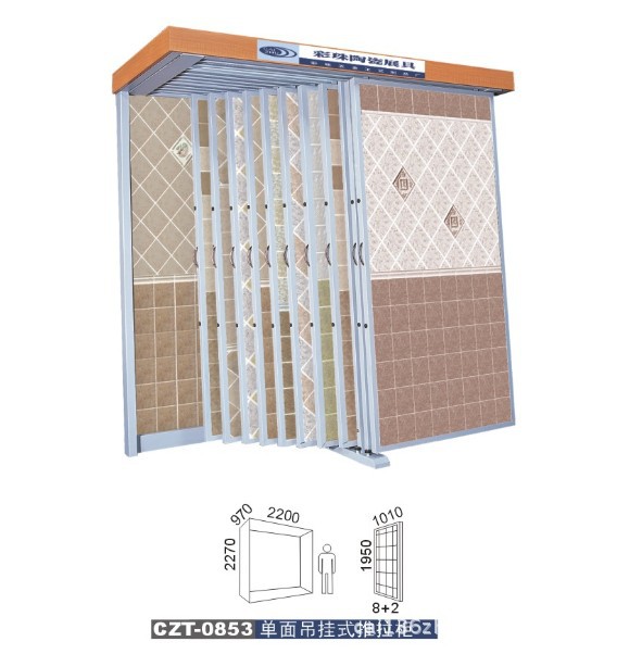 彩珠展具是一家专业生产经营各种建材展具的企业。主要设及行业用途有:瓷砖展示架,地砖展示架、墙砖展示架、大理石展示架、洁具展示架、天花展示架、地板展示架、资料架等等、也可按照客户的要求以及尺寸量身订做特殊展示架。
