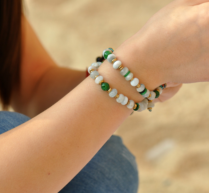 饰品材质均采用天然半宝石、水晶、925纯银等结合皮绳和纯棉线。部分材料为珍贵进口高端品牌。