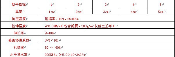 土工席垫规格及性能:土工席垫目前宽度为1m,厚度为1cm-5cm,抗压强度50-300kpa。并可根据工程要求定做其他规格和性能的产品。