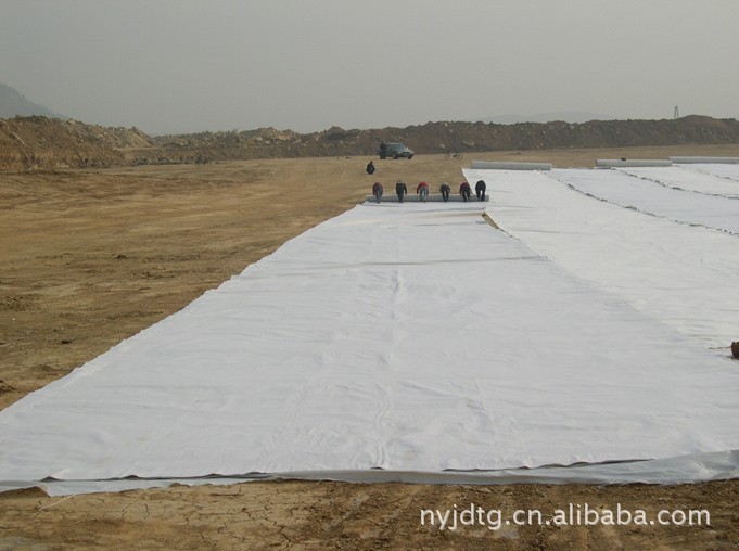 短纤维针刺土工布是目前应用最广泛的非织造土工布之一。纤维经过开松混合、梳理(或气流)成网、铺网、牵伸及针刺固结最后形成成品,针刺形成的缠结强度足以满足铺放时的抗张应力,不会造成撕破、顶破。由于其厚度较大、结构蓬松,且纤维通道呈三维结构,过滤效率高,排水性能好。其渗透系数达10-1-10- 2,与沙粒滤料的渗透系数相当,但铺起来更方便,价格也不贵,因此用作反滤和排水最为合适。还具有一定增强和隔离功能,也可以和其它土工合成材料复合,具防护等多种功能。