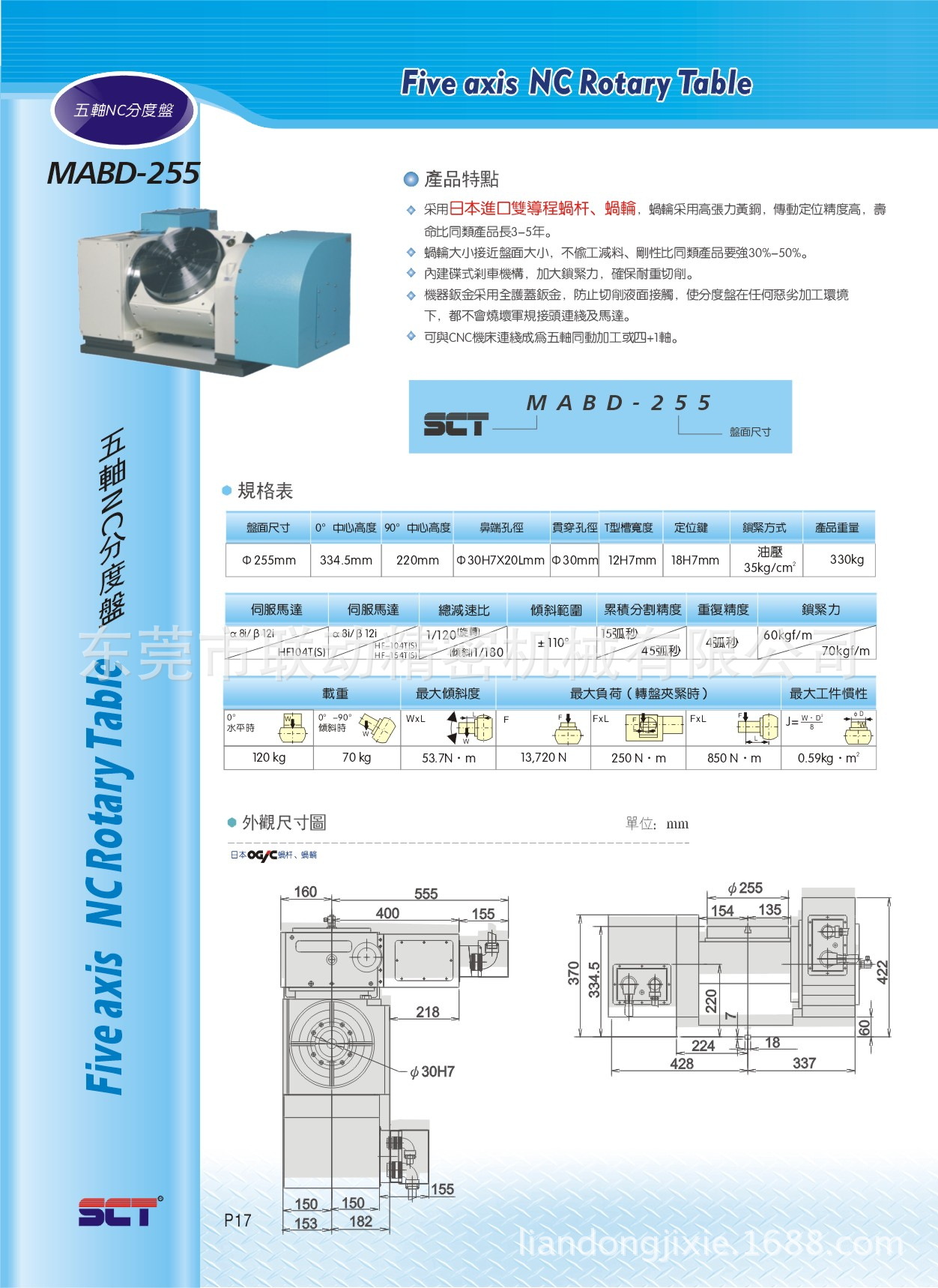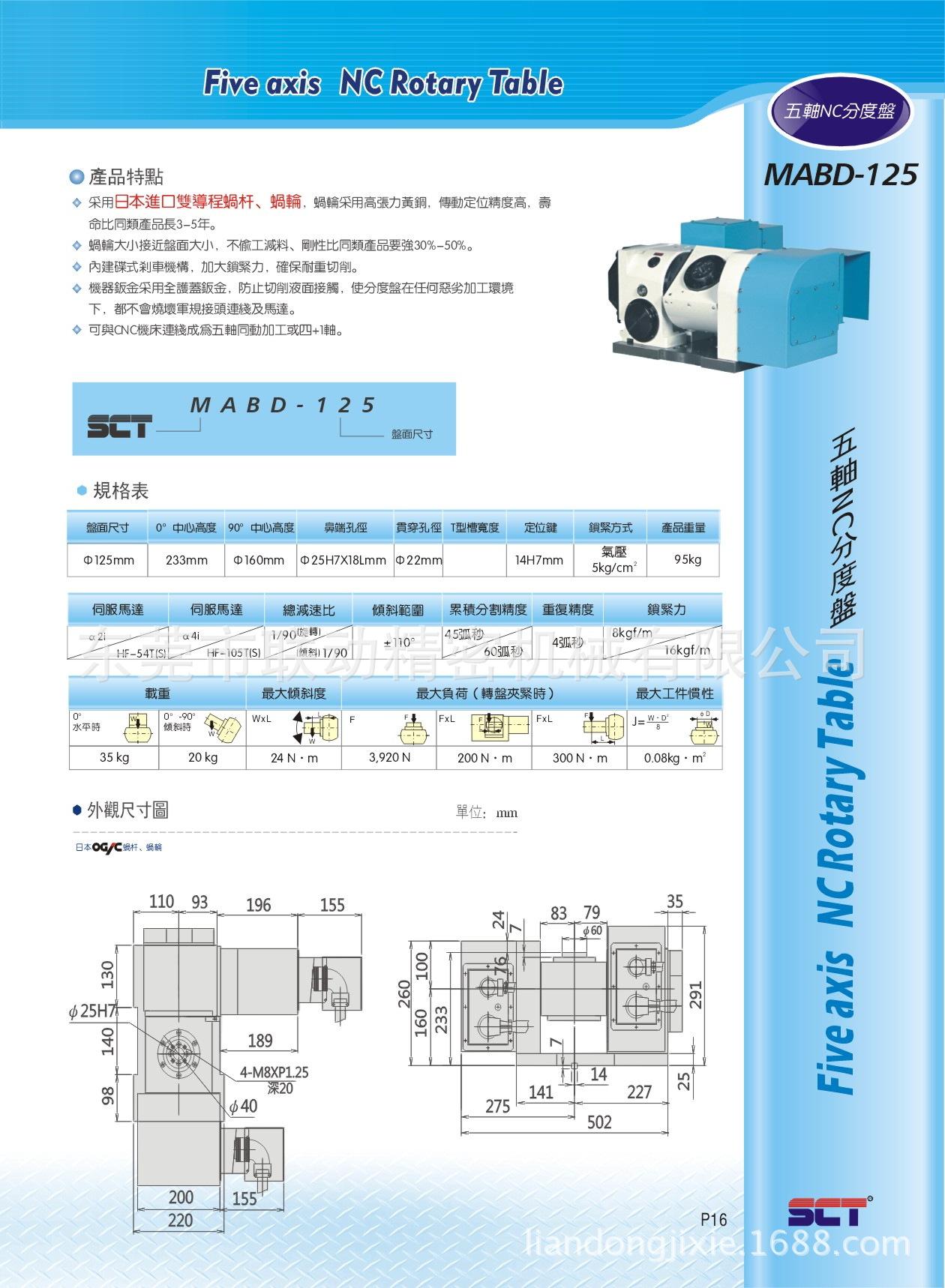2.产品的轴承:使用的是进口的交叉滚柱轴承,保持器的特殊设计,可以使轴承的寿命加长。比同类型的产品更能耐重切削,精度的保持性更为长久。