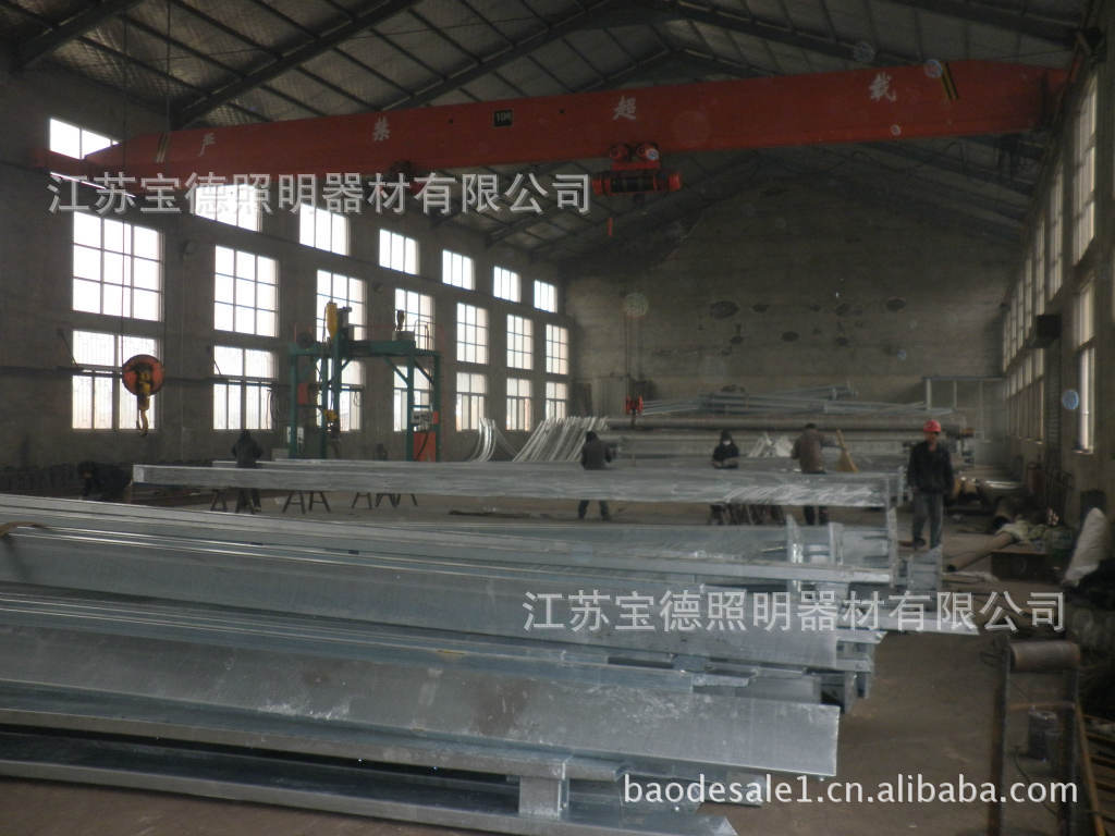 •3、钢杆防腐处理一般采用热镀锌,镀锌层表面光滑美观,光泽一致,无皱皮、流坠及锌瘤、起皮、斑点、阴阳面等缺陷存在,锌层厚度达到86um以上,镀锌层附着力符合GB2694-88标准,保证8年不褪色,灯杆的抗风能力按36.9米/秒设计。灯杆防腐寿命大于20年。