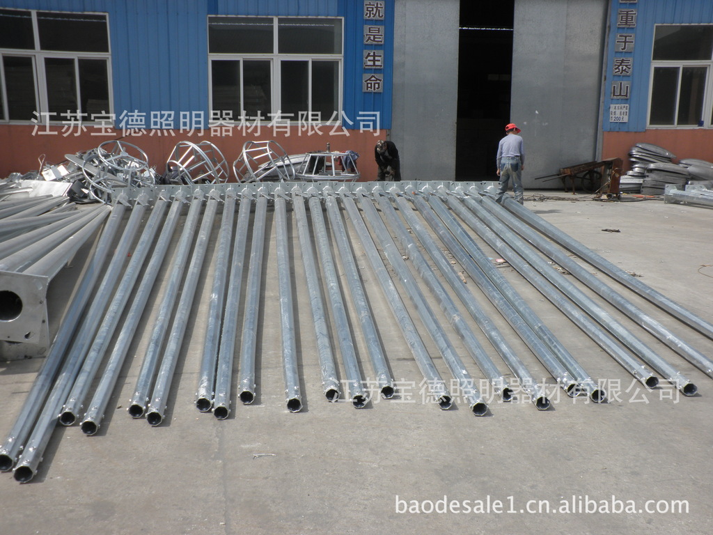 •1、灯杆一般采用上海宝钢优质Q235(SS400)钢材,经过大型折弯机卷压成型。