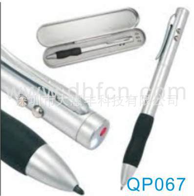 具有红激光指示\LED白灯照明\圆珠笔书写三种功能.笔的尺寸为140*14.5MM,笔身外表颜色可以要按要求而定,并可加LOGO,手写握把为软胶,写字手感好。