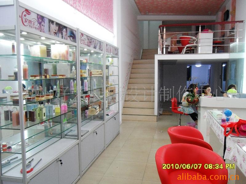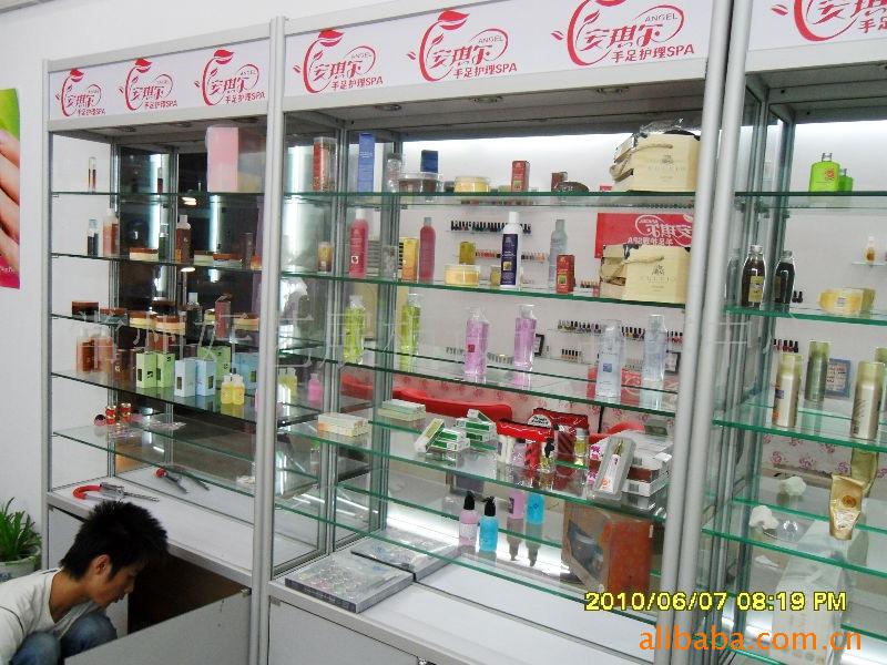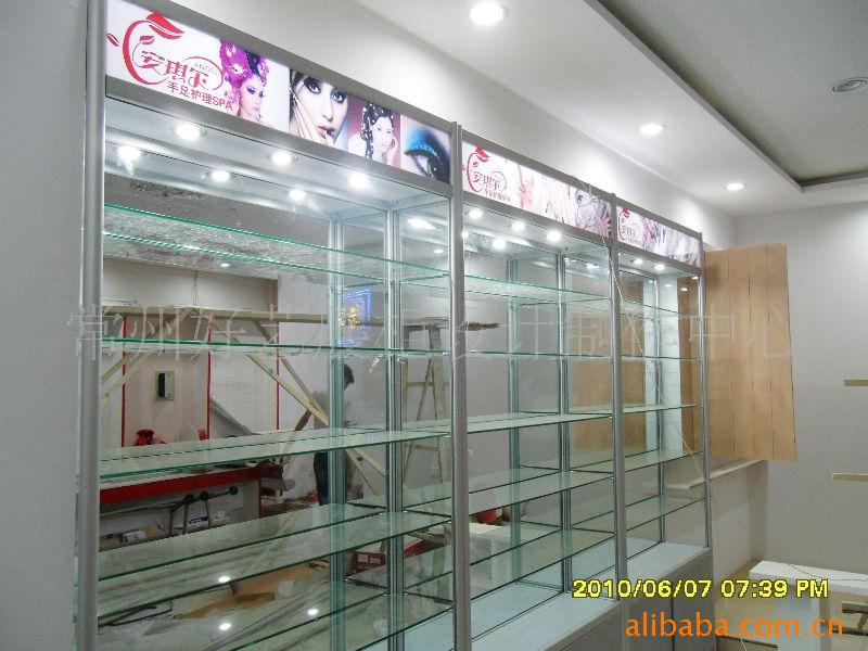 本展柜材质为铝钛合金。易于拆装和运输,店主可以根据自己的店面装修风格、展示产品的需求、自己的主观喜好选择型材颜色和搭配板材颜色,根据店面的大小确定展示柜的尺寸,加以设计制作,配以透明玻璃、镜子,和明亮的灯光效果,可以使销售的产品得以完美的展示。