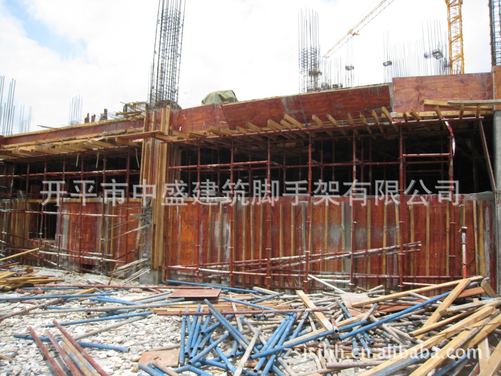 开平中盛建筑脚手架有限公司供应各种:脚手架(门式脚手架、钢支顶支撑架、雷亚架(舞台架)、菊花扣式脚手架、香蕉头式脚手架、安全爬梯、碗扣式脚手架、轮扣式脚手架、等国内国外市场需要的脚手架及配件)和钢模板(国标钢模板、桥梁钢模板、异型钢模板及客户施工所需要的各自形状钢模板)。本公司采用先进设备进行加工。焊接工艺采用半自动系统焊接。产品质量保证可靠。表面处理可根据客户要求进行加工:油漆、喷粉、电镀、热镀锌。所有产品的配件齐全,规格型号齐备。欢迎来电订购或者来厂参观定货;