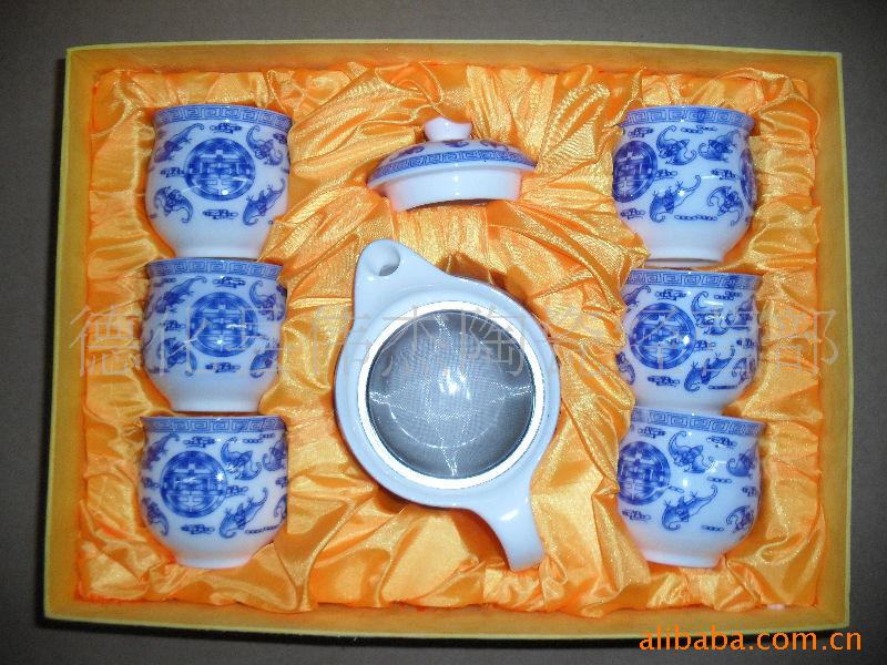 【品名】:伟杰陶瓷 高档七头玉瓷双层茶具套装