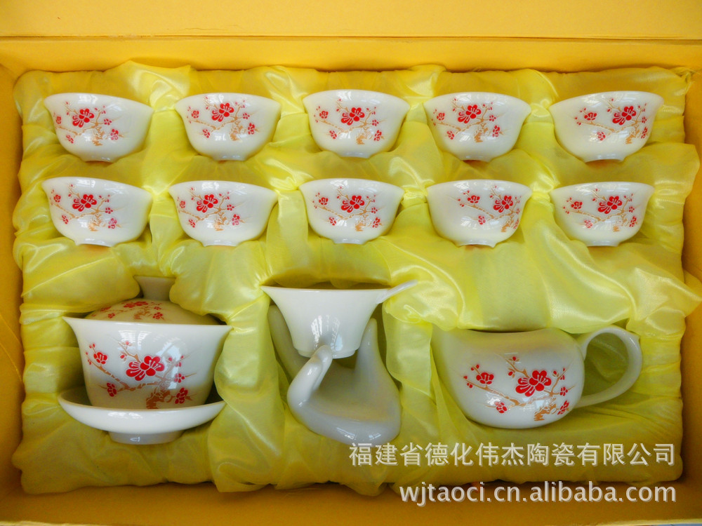 【品名】:伟杰陶瓷 高档14头玉瓷功夫茶具套装