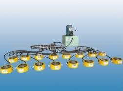 一、用途 本公司生产的TRSM 薄型同步千斤顶,设计有安全保压装置,内置卸压阀防止过载,以保护千斤顶以利于安全操作。并设计四组截止阀,可随时控制千斤顶同步升与降,该装置的连接,采用的是高压胶管和螺纹接头连接,具有使用快捷,并克服快速传统接头漏油缺点主要用于电力、建筑、机械制造、矿山、铁路桥梁、造船等多种行业的设备安装起顶拆卸作业。