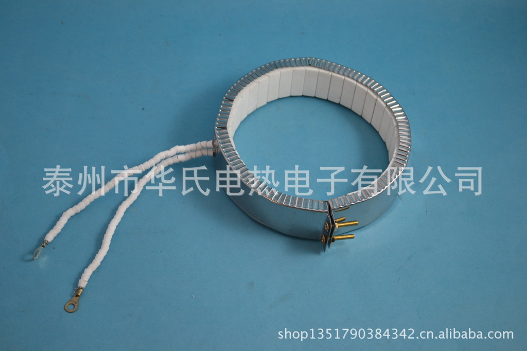 陶瓷电加热器有圈型和板状等规格,工作可靠寿命长、坚固耐用,节约能源,具有安装灵便、耐高温、传热快、绝缘良好、制作不受型号和规格大小的限制等优点。可根据用户需求的接线方式,电压从36V、110V、180V、220V、380V ,最高功率负载每平方6.5W ,与传统电热器相比较能量消耗可降低30%.。
