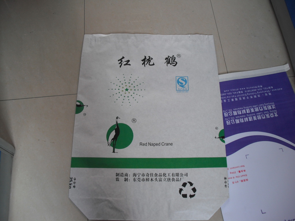 2. 纸塑复合袋:又称三合一复合纸袋,是一种小型的散装容器,主要以人力或叉车实现单元化运输,它便于装运小宗散装粉粒状物料,具有强度高防水性好,外型高丽,便于装卸等特性,是一种目前最流行和实用的普通包装材料。 工艺说明:外面采用精制白牛皮纸或黄牛皮纸,里面采用塑料编织布,通过高温高压使塑料粒子PP融化,把牛皮纸和塑料编织布复合在一起.可另加内膜袋。纸塑复合袋形式等同于缝底开口袋.具有强度好,防水防潮等优越的特点。