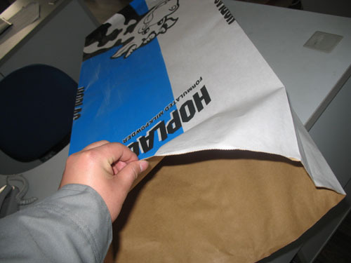. 25kg牛皮纸袋:包括三层纸袋、四层纸袋、多层纸袋.可在纸上采用PP料淋一层膜,起防水作用;采用进口俄罗斯黄牛皮纸或加拿大白牛皮纸.可另加内膜袋.也可彩色胶印。形式为缝底开口,具有环保、卫生等特点。多层牛皮纸袋:有进口牛皮纸和国产牛皮纸,牛皮纸和PP新料编织布的完美复合材质,袋内可加PE塑料袋,完全复合食品级要求。可任意选择适合您的包装。款式有:缝底开口式、糊底开口式.是出口企业较多选用的包装方式。主要可用于包装化工品、食品添加剂、饲料添加剂、颜料、奶粉、干粉砂浆等建材产品等.