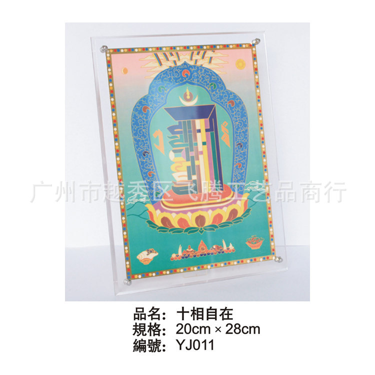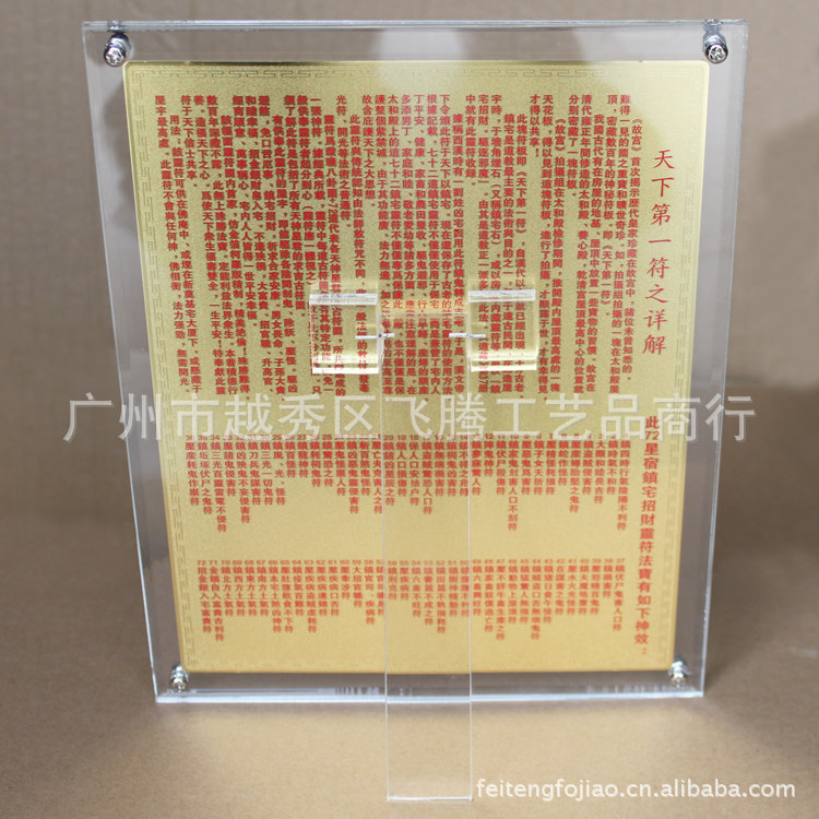 广州市越秀区飞腾工艺品商行是广州市飞腾骏业礼品制造有限公司(简称为“飞腾金卡”)的直属品牌专卖店,飞腾金卡专业制卡及制造铜镀金工艺品的佛教用品直接厂家,我们既可根据客户要求订制,也可供客户当场选购。本公司遵循“创一流产品,走遍全世界”的宏伟目标和“踏实、优质、创新、共赢”的经营理念;集开发、制造、销售为一体,注重品牌发展,并为此建立了完善管理模式和质量保证体系。 主要产品有:佛教用品、佛教用品批发、电动转经轮、手摇转经轮、金经书、太阳能转经轮、香水车座、吉祥车挂、阅经架、佛教工艺品、罗盘、佛教用品风水物、道教风水物、转经火轮、吉祥钟表、LED莲花灯、佛教用品水晶摆件、亚克力佛教用品摆件、亚克力摆件、笔筒、铜板画、密宗唐卡、佛卡护身符、道教开光护身符、毛泽东纪念生肖卡、八大守护神生肖金卡、六十甲子太岁护身符、手机链、圣诞礼品、镂空工艺品、十相自在产品、九宫八卦产品、水晶工艺品、纸镇、有机玻璃工艺品、VIP金卡、银卡、金卡银卡名片、金属书签等。此产品均按专业要求结合各地风俗习惯设计而成,精致、美观、大方,深得佛界各位人士的好评。